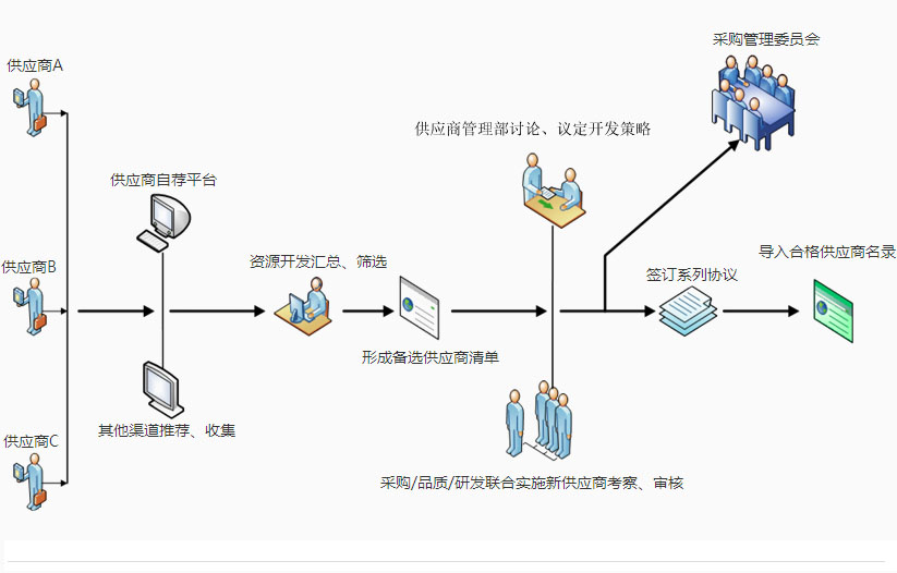 1.潛在供應商需填寫供應商信息表(基本信息、生產制造、研發、質量、交付、原材料管控、環保等)及公司資質證書。