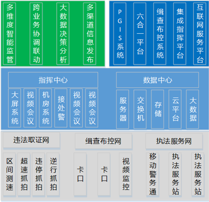 三大防控網:通過違法取證網、緝查布控網、執法服務網的融合,實現對違法車輛、布控車輛的攔截。