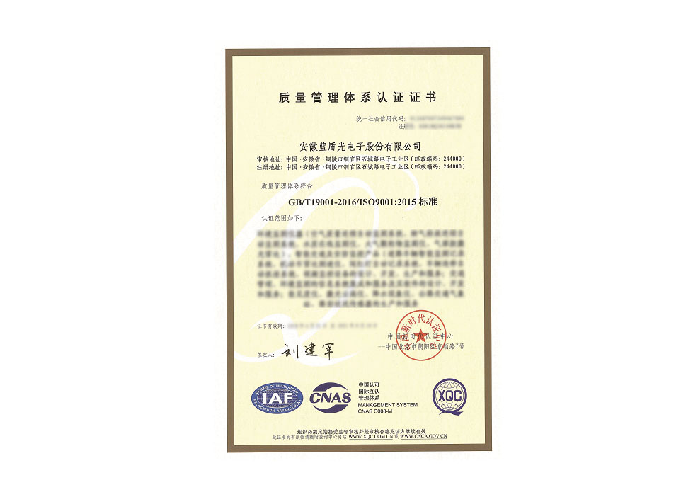 質(zhì)量管理體系認(rèn)證證書