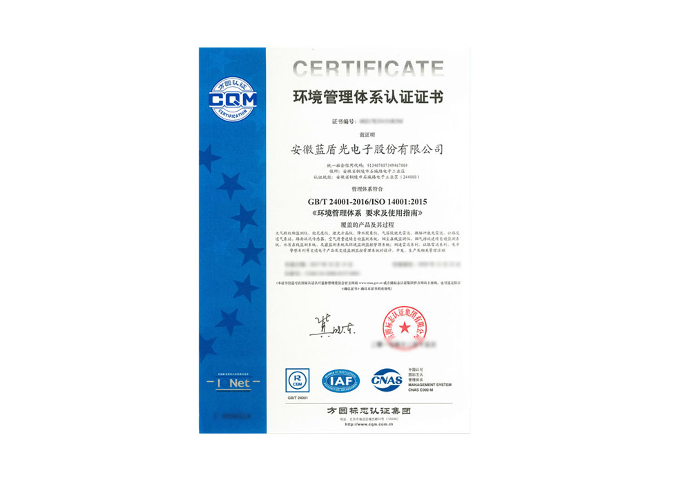 環(huán)境管理體系認(rèn)證證書